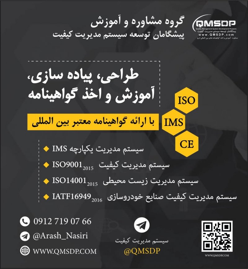خدمات مشاوره و آموزش سیستم های مدیریتی اثر بخش ، بهبود سطح تعالی سازمان، افزایش توان رقابتپذیری و نهادینهسازی روشهای نوین مدیریت اخذگواهینامه های سیستم مدیریت کیفیت