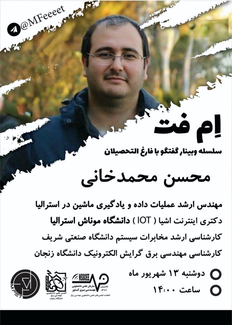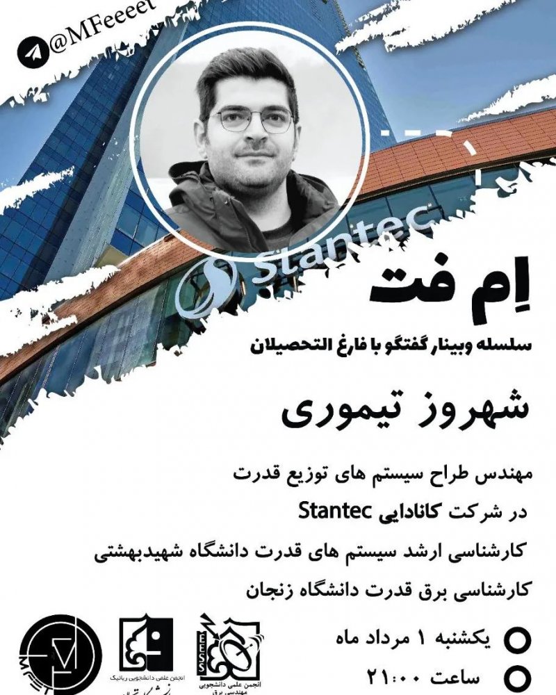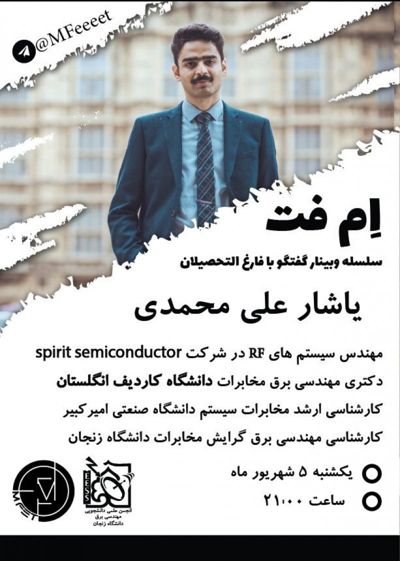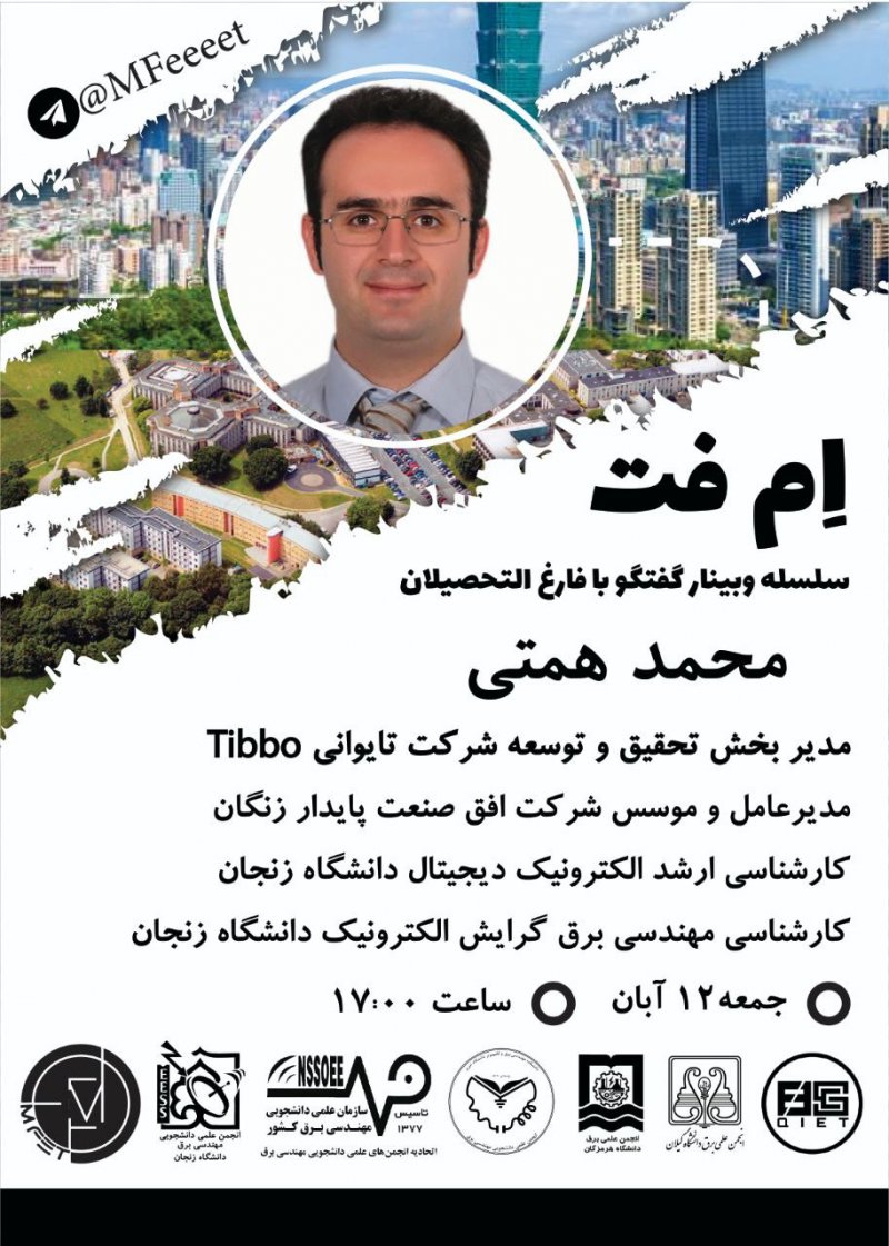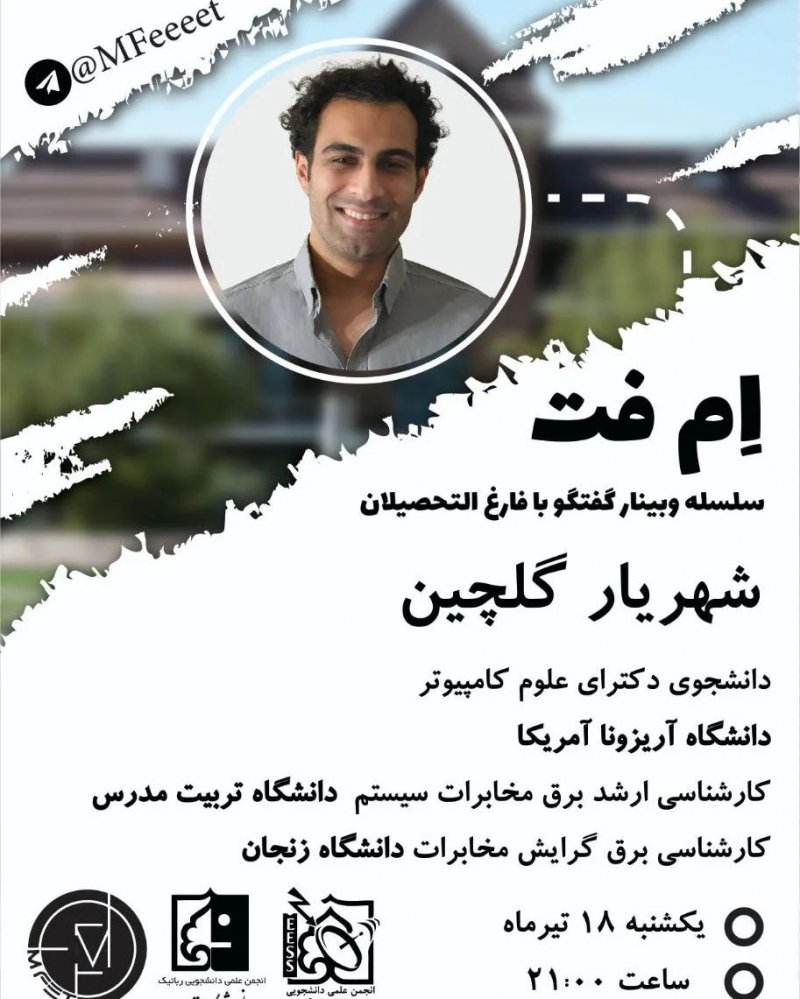 اِمفِت چیه؟ یه طرحیه که جمعی از فارغالتحصیلهای باحال و موفق دانشگاهزنجان از رشتههای برق، کامپیوتر و فیزیک رو دور هم جمع کرده تا تجربیاتشون در زمینه مهاجرت، ادامهتحصیل، کنکور و حتّی کار در شرکتهای بزرگ رو باهم به اشتراک بزارن. "امفت" هر هفته، یه وبینار با یکی از دوستان موفقمون برگزار میکنه و لینکشرو توی کانالش میذاره. اگه خواستی عضو شو تا از دستشون ندی! "باهم، برای هم"
