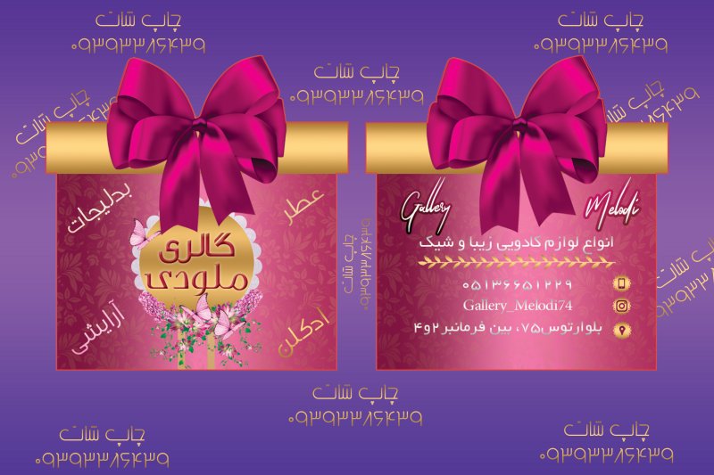 سلفون براق ومات ویزیتی یکرو ۲۰۵,۰۰۰ سلفون براق و مات ویزیتی دورو ۵ روز ۲۶۰,۰۰۰ سلفون براق و مات طرح لمینت دورو ۸ روز =۳۴۰۰۰۰ سلفون براق و مات مربع دورگرد - ۱۰ روز ۲۶۰۰۰۰ سلفون براق امباس ویزیتی دورو - ۱۳ روز ۲۵۰۰۰۰ سلفون طرح چرم طرح لمینت ۱۸روز =۳۴۰۰۰۰ سلفون مخمل ویزیتی یکرو ۱۰ روز ۴۳۵۰۰۰ : دو رو ۱۰ روز ۴۳۶۰۰۰ کتان آلمان ویزیتی دورو ۸ روز =۳۲۰۰۰۰ کتان آلمان ویزیتی یکرو ۸ روز ۳۱۰۰۰۰ کتان امباس طرح لمینت۱۰ روز=۳۳۰۰۰۰ کتان امباس ویزیتی یکرو ۸ روز ۲۳۰۰۰۰ کرافت طرح لمینت ۳۰۰ گرم ۱۳ روز=۳۳۵۰۰۰ لمینت برجسته ۵ روز= ۶۸۰۰۰۰ لمینت برجسته ۱۲ روز۶۴۰۰۰۰ لمینت برجسته مربع ۵ روز= ۴۸۳۰۰۰ لمینت برجسته مربع ۱۲ روز ۴۴۰۰۰۰ لمینت برجسته دایره=۷۰۰۰۰۰ لمینت برجسته طلاکوب۸ روز ۱۰۳۷۰۰۰ لمینت برجسته طلاکوب ۱۵ روز ۹۶۰۰۰۰ لمینت برجسته مخملی ۱۵ روز =۸۸۳۰۰۰ لمینت برجسته مخمل طلاکوب ۲۰ روز ۱,۲۵۳,۰۰۰ تومان لمینت براق ۴ روز= ۶۲۰۰۰۰ لمینت براق ۱۰ روز ۵۸۰۰۰۰ لمینت براق طرح موج ۳ روز ۶۱۵۰۰۰ طرح موج ۱۳ روز ۵۸۰۰۰۰ لمینت براق طلا کارت ۸ روز ۱۶۰۰۰۰۰ طلا کارت ۱۳ روز ۹۷۰۰۰۰ لمینت براق مربع - ۱۳ روز ۴۰۰۰۰۰ لمینت مات=۹۰۰۰۰۰ تمامی کارت ویزیت ها تعداد ۱۰۰۰عدد هستش طراحی کارت ویزیت ۵۰تومان