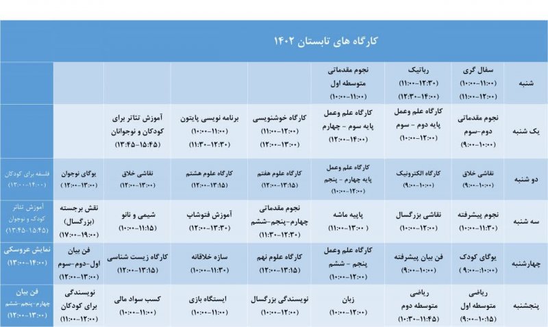 کارگاه های علمی تابستان ۱۴۰۲