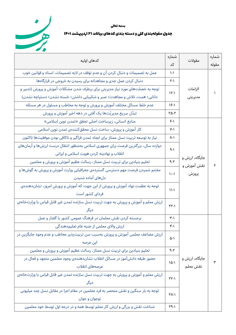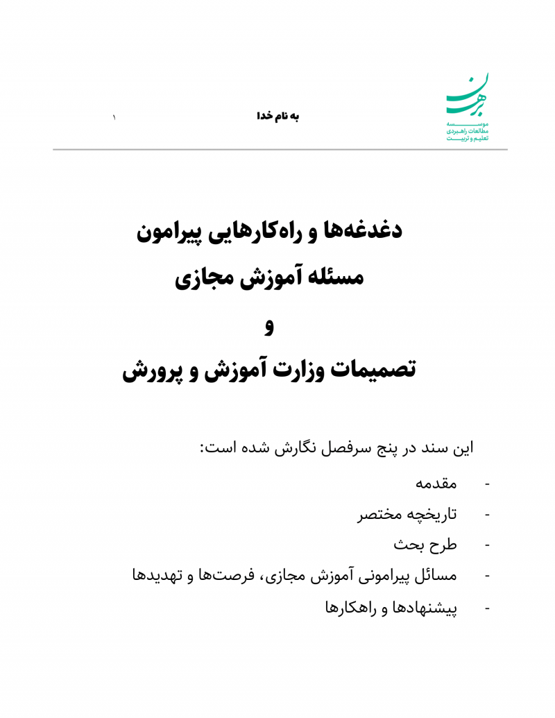 برگزاری نشستهای تخصصی با راهبری اندیشکده برهان ۱. نشستهای چهارسوق چهاردهم شامل: - نشست تخصصی ظرفیتهای بینالمللی تعلیموتربیت ایران - نشست تخصصی فناوریهای نوین و تاثیر آن بر آینده آموزش ۲. نشتهای چهارسوق سیزدهم شامل: - نشست تخصصی تعلیم و تربیت دختران - نشست تخصصی الگوی جذب و تربیت معلم - نشست تخصصی نقدو بررسی حکمرانی نظام آموزشی مبتنی بر بازار ۳. نشستهای چهارسوق دوازدهم شامل: - نشست تخصصی آینده آموزش، بیمها و امیدها - نشست تخصصی وضعیت تحصیل دانشآموزان مهاجر در ایران - نشست تخصصی حکمرانی نظام آموزشوپرورش در دوره برنامه هفتم ۴. سلسله نشستهای «راهبرد ملی و تمدنی پیشنهادی تحول تربیت عمومی و رسمی» شامل - تمدن در گذار سایبری - معماری برنامه درسی راهبردی - معماری حکمرانی نظام تربیت ۵. سلسله نشستهای مدرسه و کرونا شامل: - وبینار گذار در بحران؛ تعلیم و تربیت در گذار به دوران پساکرونا - وبینار سیاستهای آموزش و پرورش در ایام کرونا، بایدها و نبایدها - وبینار تجربه زیسته یک مدرسه در ایام کرونا - وبینار کرونا و آموزش مجازی در جهان - وبینار کسب و کارهای آموزش مجازی در ایام کرونا