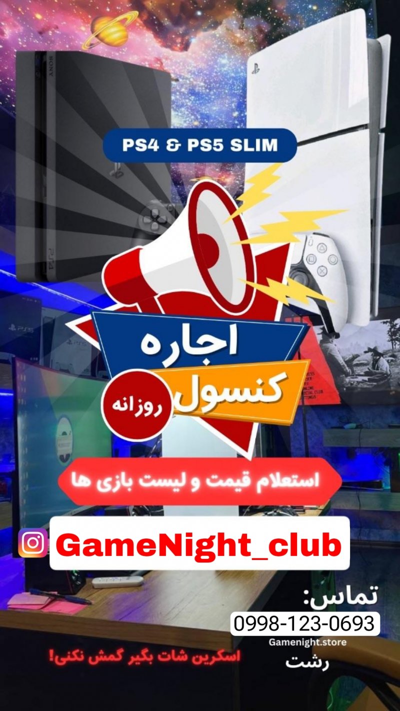 ارئه خدمات و کرایه کنسول در رشت 👇🏻 🤩 Ps4 ,ps5, xbox s ⭐️ به همراه اتاق VIP💎 ساعت کاری⏰ ۱۰ صبح الی ۱۱ شب رزرو ☎️ ۰۹۹۸۱۲۳۰۶۹۳ 📍رشت،خیابان شهدا،۳ راه پاستوریزه،جنب بانک صادرات , داخل کوچه بوتیک فرهود