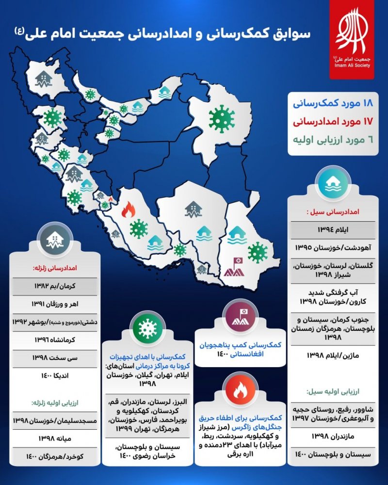 سوابق کمکرسانی و امدادرسانی جمعیت امام علی (ع)