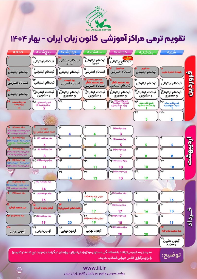 📌 شنبه و چهارشنبه : چهارشنبه ۱۷ بهمن 📌 یکشنبه و سه شنبه : یکشنبه ۲۱ بهمن 📌 دوشنبه و پنجشنبه : پنجشنبه ۲۵ بهمن