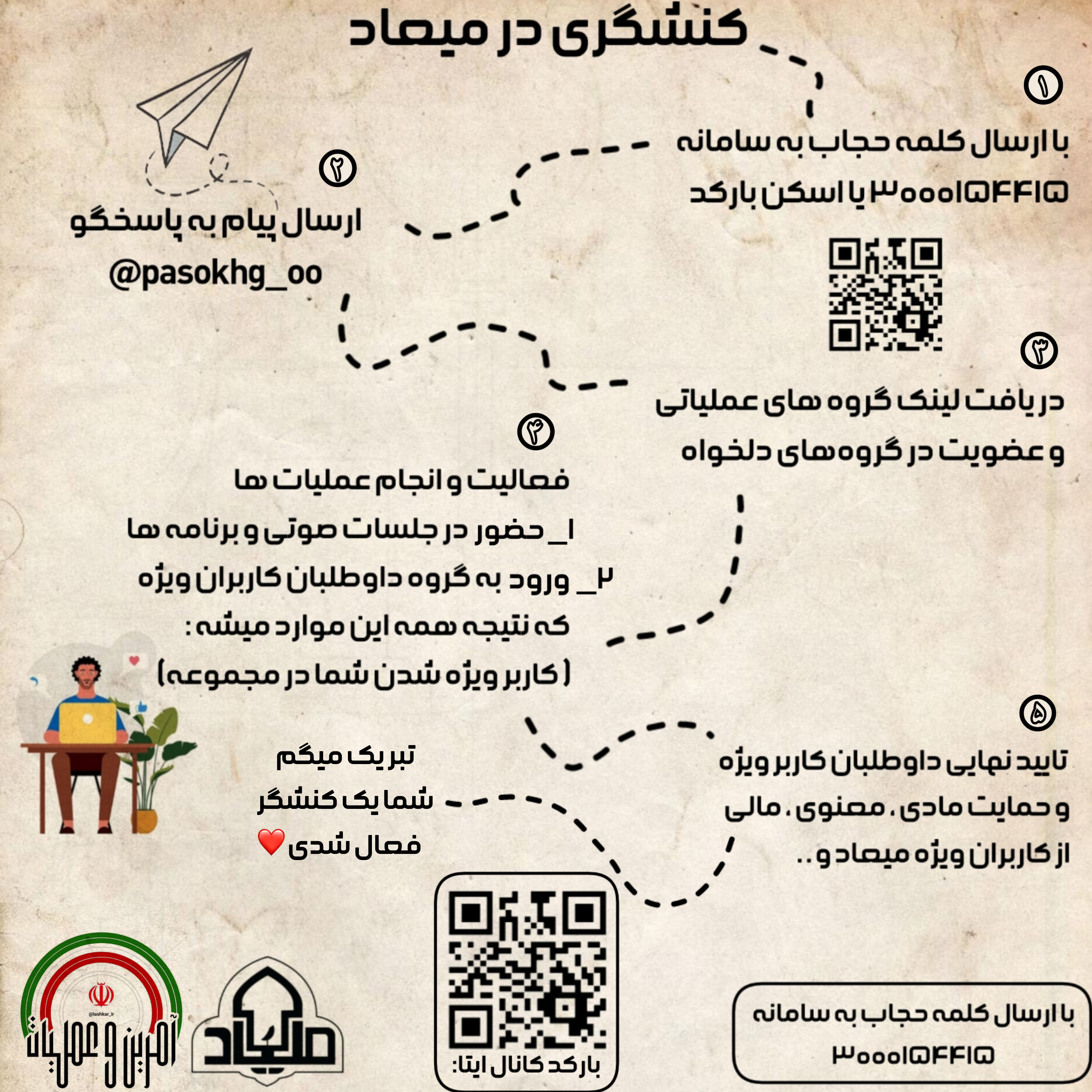 طرح امر به معروف در خانه یا همون لشکر سایبری و گروه های عملیاتی(مهیا کننده بستر نهی از منکر مردم در فضای مجازی و پشتیبانی و حمایت از اونهاست.)🌸 اما طرح کاربر ویژه ( برای حمایت مادی معنوی از افراد فعال و پرتلاش مجموعه میعاد هست که معیارهایی داره برای احرازش)✨