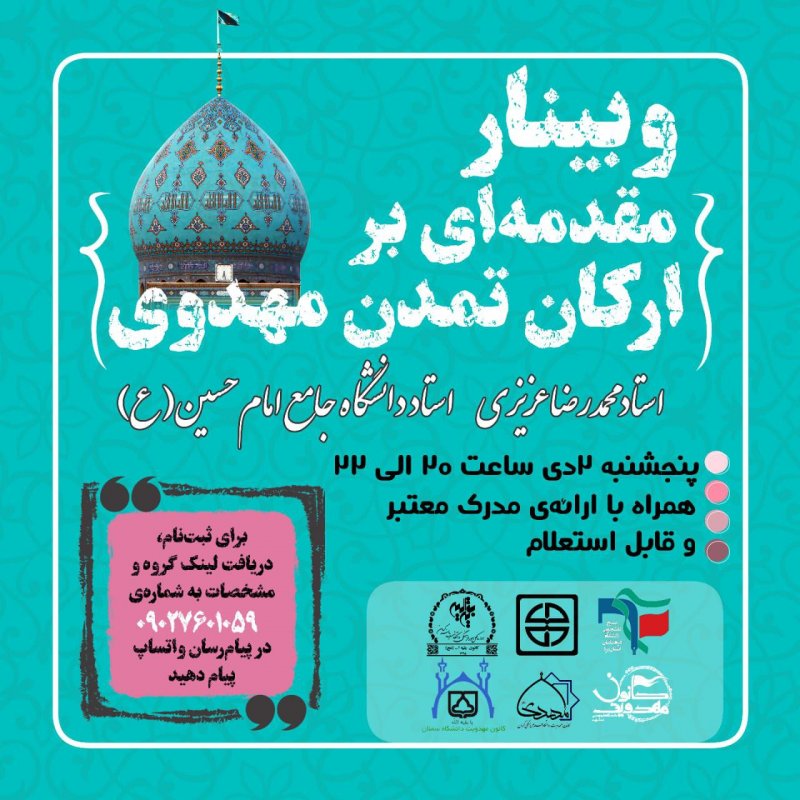 دوست دارید شما هم در مسیر خدمت به آقای غریبمان، حضرت مهدی موعود (عج)، قدمی هر چند کوچک بردارید؟! به کانون مهدویت دانشگاه سمنان بپیوندید و در اجر عظیم این کار سهیم شوید ...