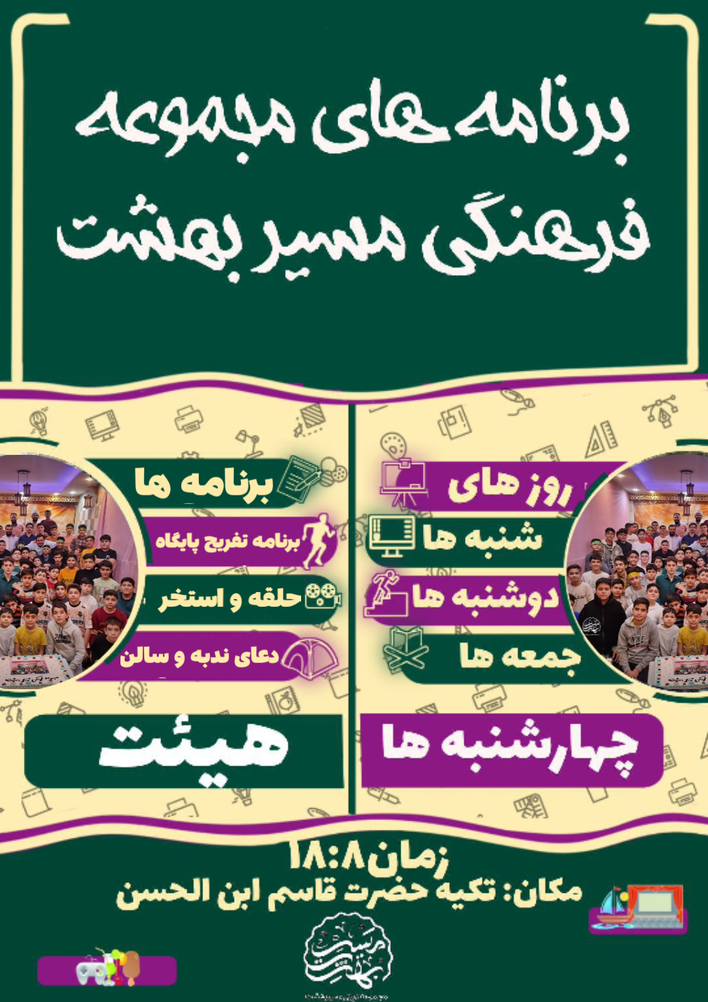 برنامه های هفتگی مجموعه فرهنگی و تربیتی مسیر بهشت