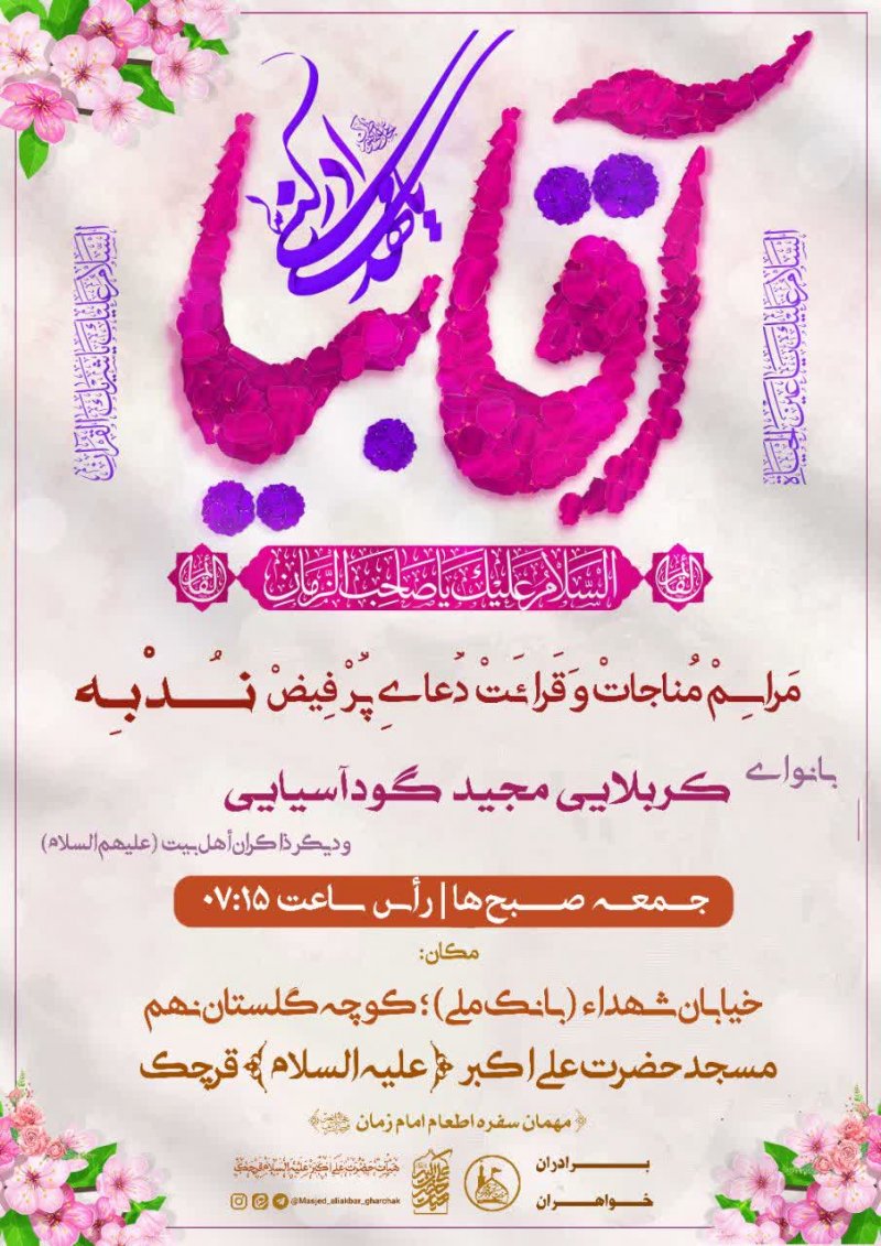 ❁﷽❁ جهت ارتباط با مسجد و دسترسی به گزارش های تصویری و صوتی از لینک های زیر استفاده کنید . آدرس مسجد : شهرستان قرچک ؛ خیابان شهداء (بانک ملی مرکزی) ، گلستان نهم ، مسجد مقدس حضرت علی اکبر ﴿ع﴾