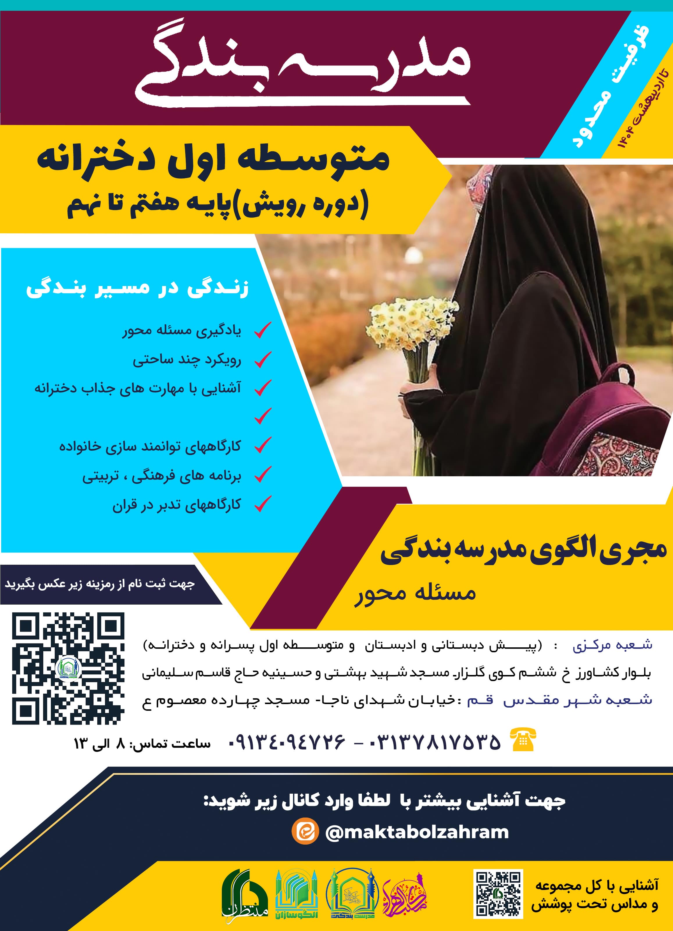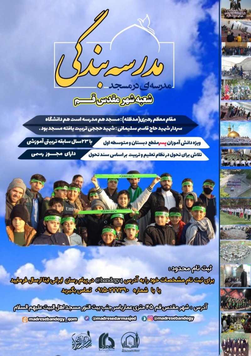 برای آشنایی بیشتر با شعب مدرسه بندگی و مسولین آن وارد کانال هایی که در زیر پوسترها قرار گرفته بشوید