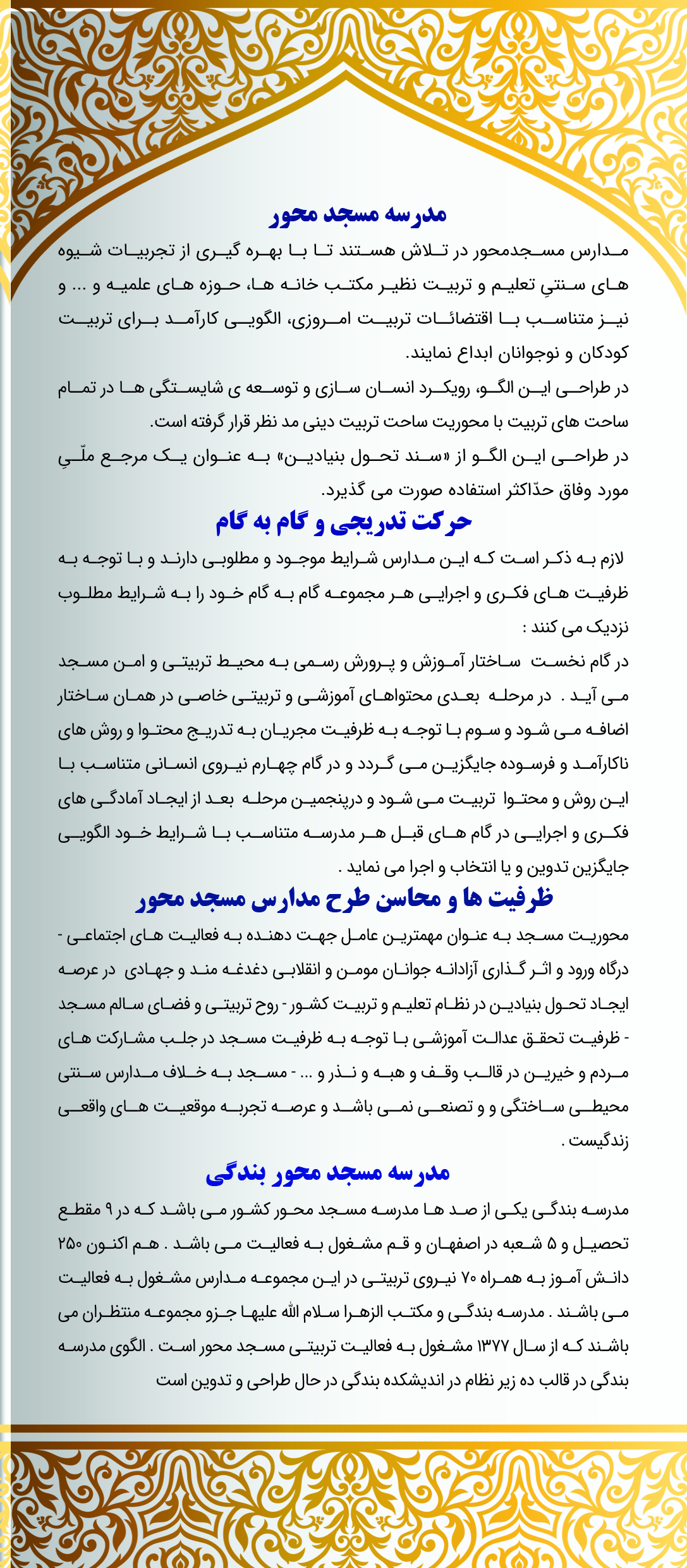 متن الکترونیکی کتاب معرفی مدارس مسجد محورنشانی شعبه های مدارس بندگی