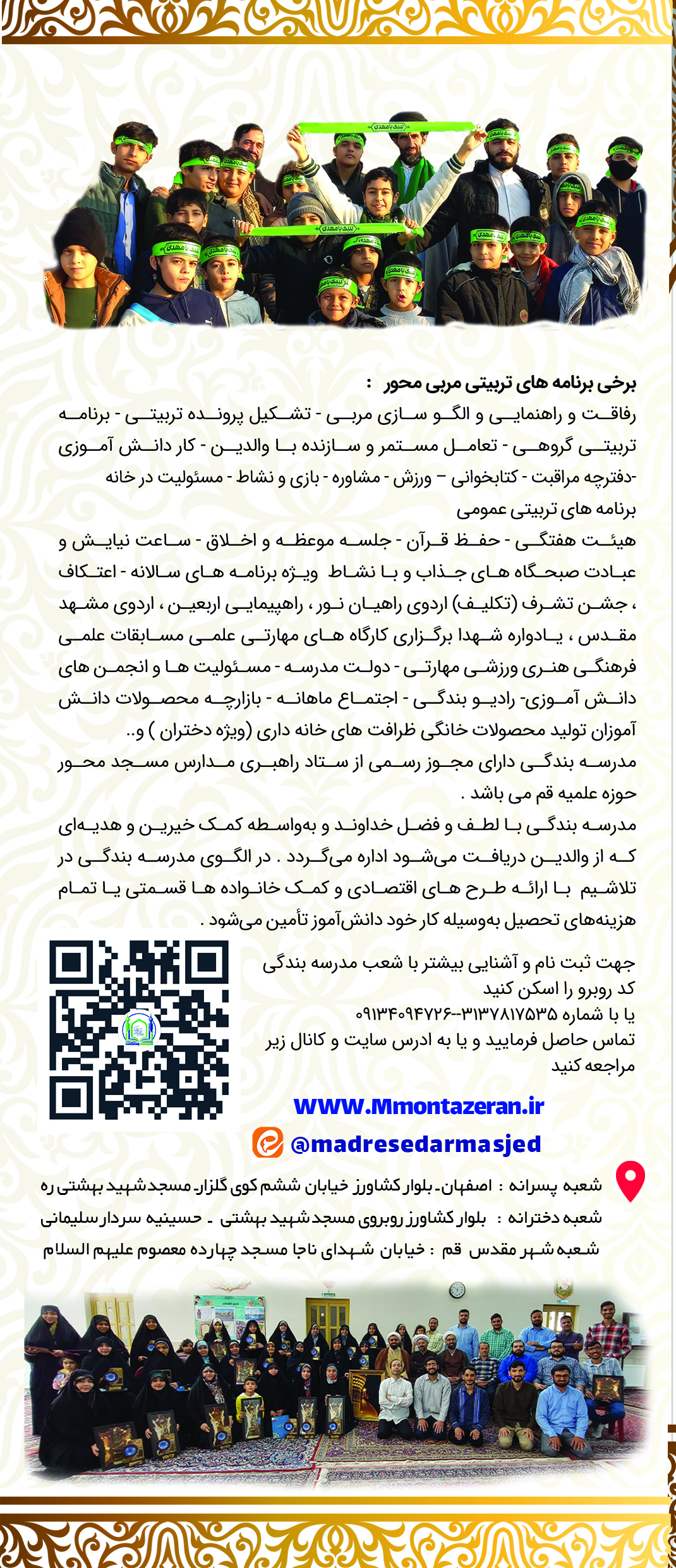 مدارس بندگی زیر نظر مجموعه فرهنگی تربیتی منتظران می باشد