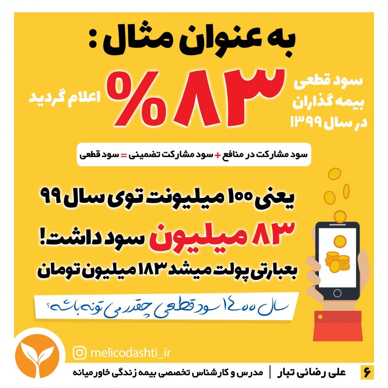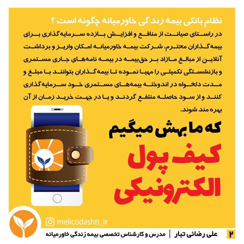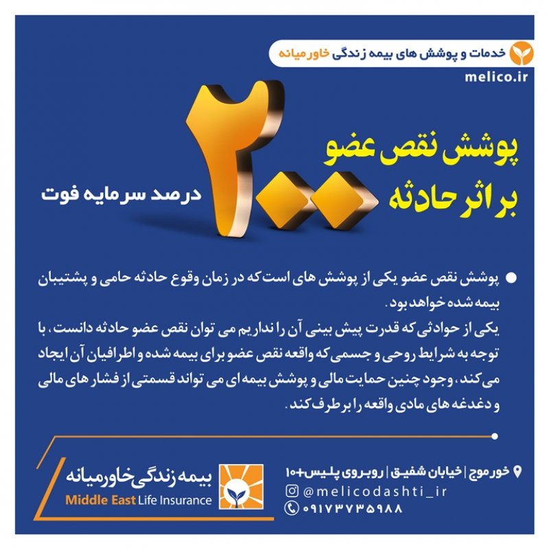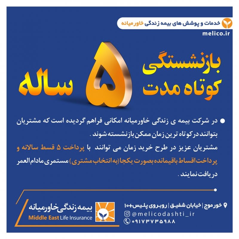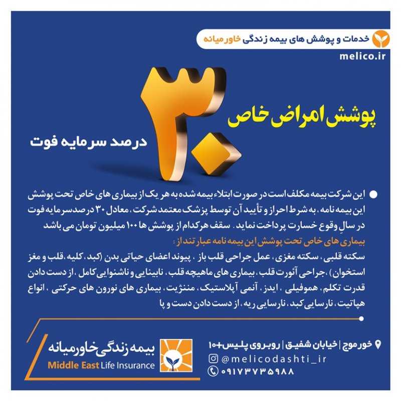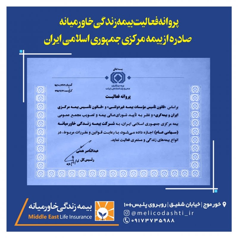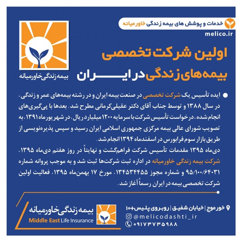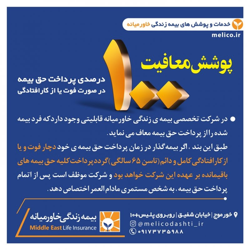 شرکت بیمہزندگےخاورمیانہ اولین شرکت *تخصصی* بیمه در کشور است که مجوز خود را در ۱۷ بهمن ۱۳۹۵ به شماره ۱۳۴۵۳۴۴۵۵ از بیمه ی مرکزی و معاونت بانک، بیمه و بورس وزارت اقتصاد و دارایی دریافت و بعنوان اولین شرکت تخصصی بیمه در زمینه بازنشستگی جهت تحول اساسی در سبک زندگی افراد وارد چرخه سرمایه گذاری کشور گردید . این شرکت با حذف ۱۸ شاخهی بیمه ای از بدنه ی خود ، اختصاصی در زمینه بازنشستگی و مستمری مادام العمر فعالیت میکند و درسال های ۱۳۹۶ تا ۱۳۹۹ با رتبهی توانگری مالی یک، بعنوان *توانگرترین شرکت بیمه* در بین ۳۳ شرکت بیمه ی فعال در کشور معرفی گردید. شرکت بیمه خاورمیانه دارای پوشش ها و تعهدات فوق العاده فراوانیست که به اختصار به معرفی برخی از آن ها خواهیم پرداخت: 1️⃣ *پرداخت مستمری تا سن ۱۰۰ سالگی با افزایش سالانه ۵ درصد* شرکت های بیمه جنرال در شاخهی بیمه عمرِ ، پس از پایان مدت پرداخت حق بیمه ، موظفند مبلغی را بعنوان بازخرید به شخص بیمه شده اختصاص داده و قرارداد خود را با ایشان به اتمام برسانند در حالی که در شرکت بیمه تخصصی خاورمیانه پس از اتمام مدت پرداخت حق بیمه ، فرد تا سن ۱۰۰ سالگی از این شرکت مستمری دریافت خواهد نمود و سالانه پنج درصد نیز به این مستمری اضافه خواهد شد که با توجه به هزینه های بالای تحصیل ، ازدواج ، اشتغال ، مسکن و ... دریافت مستمری مادام العمر عاقلانه تر و مقرون به صرفه تر از دریافت مبلغ بازخریدی خواهد بود . 2️⃣ *دارا بودن پوشش مهم و فوق العادهی معافیت از پرداخت در صورت فوت یا از کارافتادگی بیمه گذار* پوششی منحصر بفرد در صنعت بیمه و نیاز ضروری هر خانواده ؛ به موجب این بند در صورت فوت یا از کارافتادگی بیمه گذار (سرپرست خانوار) ، تمامی اقساط بیمه نامه تا اتمام قراردادِ پرداخت(طبق سند) به عهده شرکت می باشد و بعد از اتمام پرداخت حق بیمه، شخص بیمه شده تا سن ۱۰۰ سالگی مستمری دریافت خواهد نمود .🌹😇 3️⃣ *برخورداری از سیستم نظام بانکی (کیف پول الکترونیکی)* بیمه گذاران عزیز در این شرکت بیمه علاوه بر پرداخت مبالغ حق بیمه که بصورت شش ماهه یا سالانه می باشد ، میتوانند مبالغ مازادی نیز بعنوان سرمایه گذاری در نظام بانکی خود نگهداری نموده و از مزایایی چون سود روزانه(سود مشارکت تضمینی ۱۶ درصد) ، سود سال شمار (سود مشارکت در منافع) بهره مند گردند . لازم به ذکر است سود قطعی شرکت بیمه زندگی خاورمیانه در سال ۹۹ ، ۸۳ درصد اعلام و به حساب سپرده گذاران واریز گردید. اطلاعات بیشتر در این زمینه : https://www.instagram.com/p/CaNYpDdgJ5w/?igshid=YmMyMTA2M2Y= 🌱 *برخی دیگر از خدمات و پوشش های بیمه زندگی خاورمیانه :* 🔸 بازنشستگی زودهنگام بین ۱ الی ۲۰ سال 🔸 انتخاب مدت زمان بازنشستگی ، مبلغ حق بیمه و درصد افزایش سالانه به انتخاب بیمه شده 🔸 داشتن معافیت مالیاتی 🔸 امکان برداشت وام بدون تشریفات اداری و بدون نیاز به ضامن 🔸 پرداخت سود تضمینی و سود مشارکت در منافع به حق بیمه های پرداختی 🔸 امکان بازخریدی و دریافت مبلغ اندوخته در دوران پرداخت حق بیمه 🔸 امکان بازخریدی و دریافت مبلغ اندوخته در دوران دریافت مستمری بصورت یکجا تا سن ۷۵ سالگی 🔸 امکان انتخاب پوشش سرمایه ی فوت عادی و حادثه بصورت جداگانه تا سقف بیست میلیارد ریال 🔸 امکان انتخاب پوشش هزینه های پزشکی و درمانی ناشی از حادثه 🔸 امکان انتخاب پوشش نقص عضو و از کارافتادگی 🔸امکان انتخاب پوشش بیماری های خاص ، سکته های قلبی و مغزی ، جراحی ، پیوند اعضا ، نقص عضو و .... 🔸 امکان انتخاب پوشش سرطان 🔸 امکان انتخاب ذینفعان فوت و مستمری از ابتدای قرارداد بیمه های زندگی سندهای خوشبختی و نیاز امروز و پشتوانه فردایمان هستند. وجود اولین شرکت بیمهی تخصصی کشور یعنی خاورمیانه، درکنارِ ویژگی ها و خدماتِ فوق العاده و منعطف جهت رفاهِ امروز و فردایمان، میتواند به میزان زیادی ریسک های احتمالی زندگیمان را کاهش داده و آینده درخشانی را برای ما و خانواده مان رقم بزند. *فردایمان ، سپاسگزار تصمیم امروزمان خواهد بود.*🌺 ــ