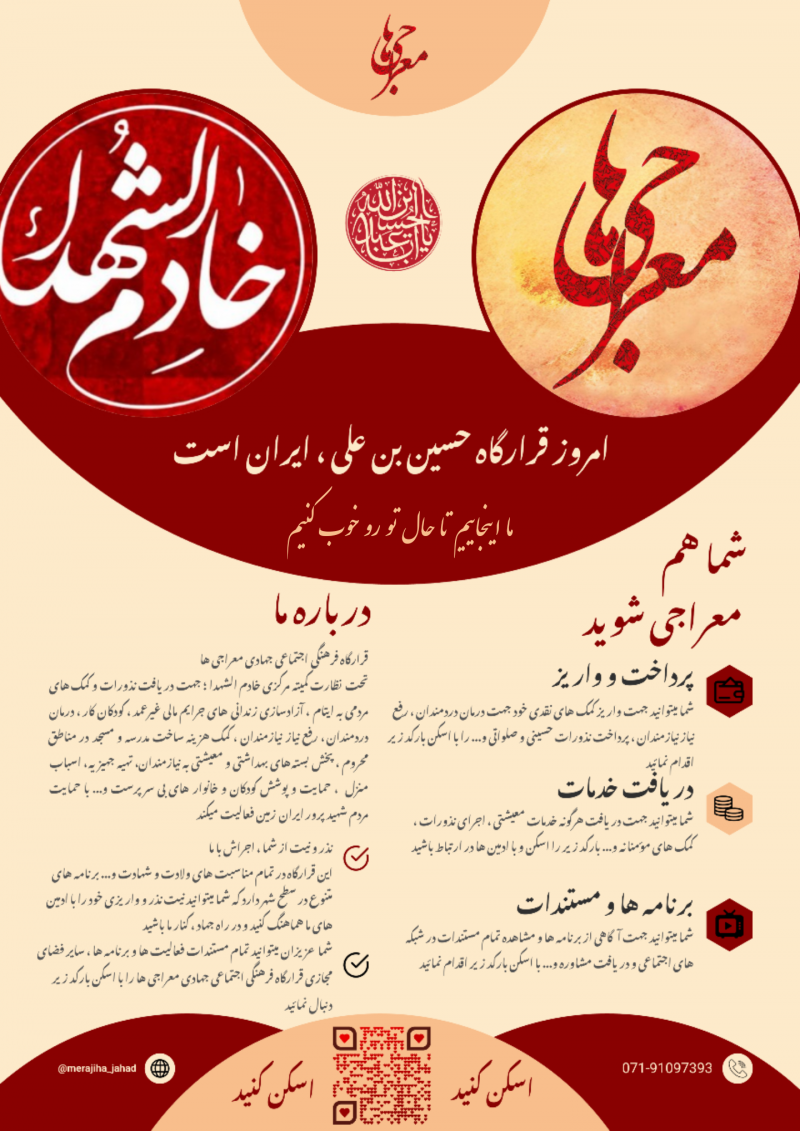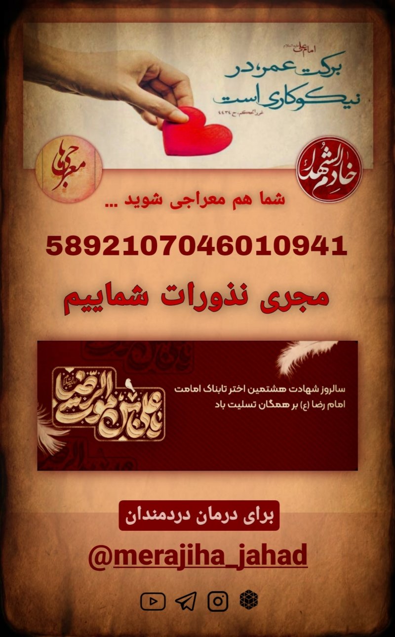 شما هم معراجی شوید ... ۶۲۱۹۸۶۱۹۴۹۱۵۸۶۱۱ شماره کارت امور جهادی ( نذورات ، صدقات )