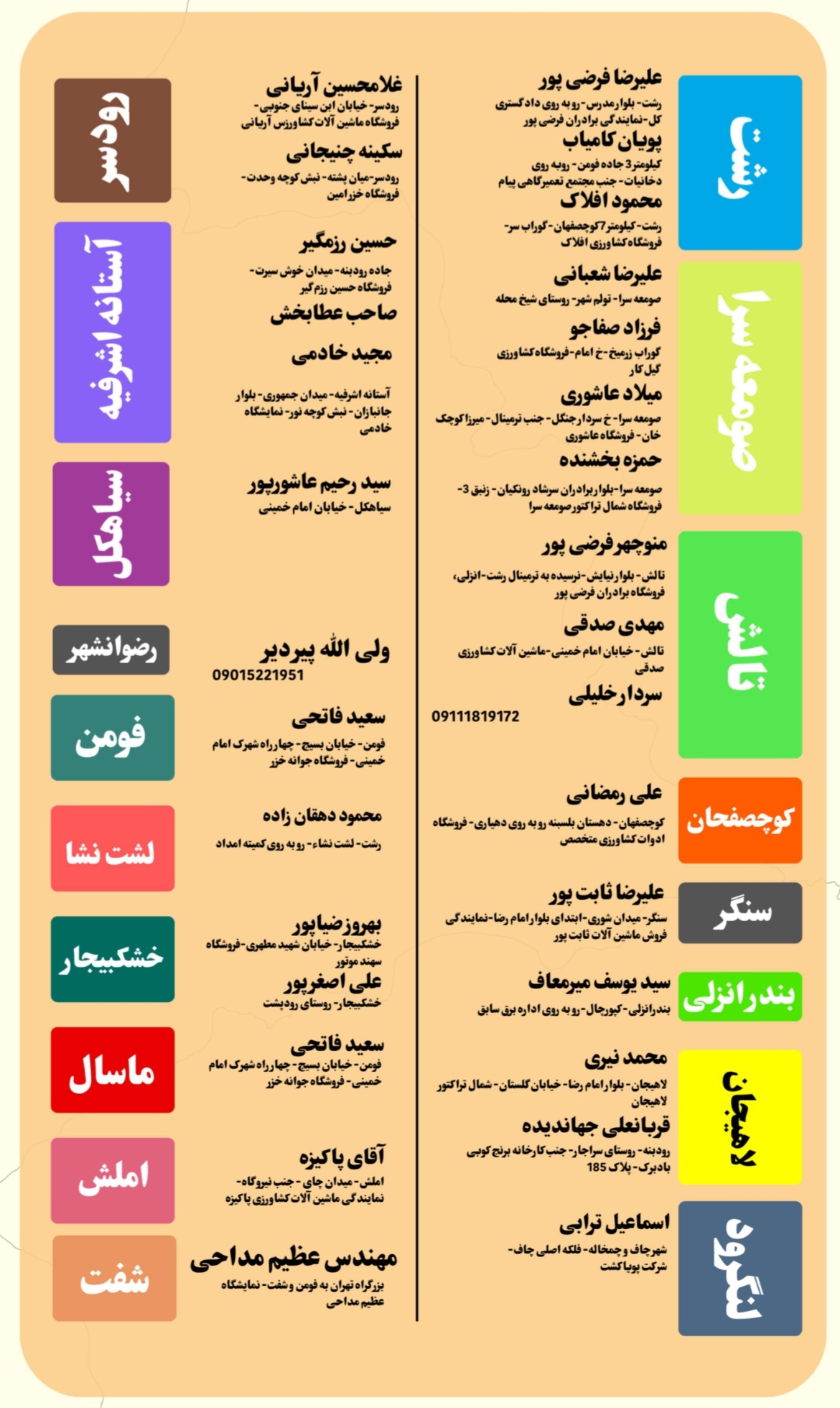 نمایندگان گیلان(برای آدرس به چپ بکشید)