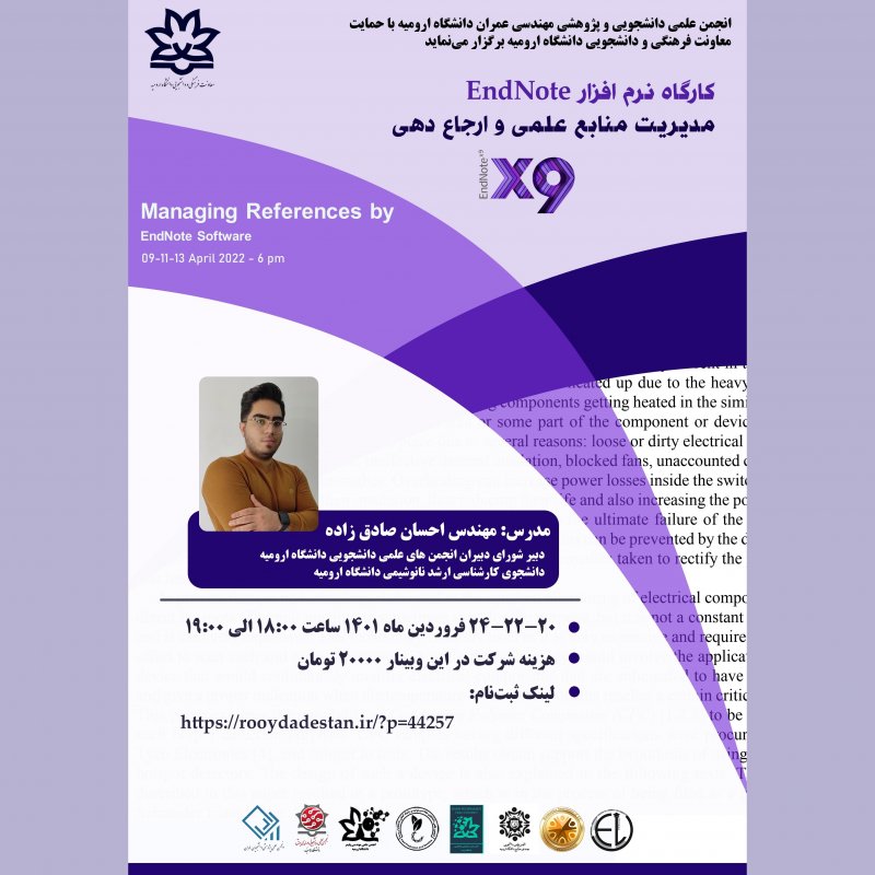 📝 کارگاه -سهروزه- نرمافزار End Note (مدیریت منابع علمی و ارجاعدهی) 🎙 سخنران: مهندس احسان صادقزاده - دبیر انجمن نانوفناوری دانشگاه ارومیه 🗓 تاریخ برگزاری: ۲۰ - ۲۲ - ۲۴ فروردین ماه ۱۴۰۱ ⏱ ساعت ۱۸ الی ۱۹ 📲 لینک ثبت نام: 🌐 https://rooydadestan.ir/?p=44257 🧑🏻💻 به میزبانی انجمن علمی دانشجویی مهندسی عمران دانشگاه ارومیه با همکاری: 🟢 انجمن علمی دانشجویی نانو فناوری 🟡 انجمن علمی دانشجویی مهندسی پلیمر 🟢 انجمن علمی دانشجویی تولید و ژنتیک گیاهی 🟡 انجمن علمی دانشجویی مهندسی برق 🟢 انجمن علمی دانشجویی مهندسی صنایع 🟡 انجمن علمی دانشجویی اقتصاد 🟢 انجمن علمی دانشجویی زبان انگلیسی t.me/civilesuu t.me/nanotechnology_uu t.me/polymer_urmiauni t.me/AgroBreeding_UU t.me/Urmia_UESC t.me/uu_industrial t.me/eco_urmia t.me/elu_urmia