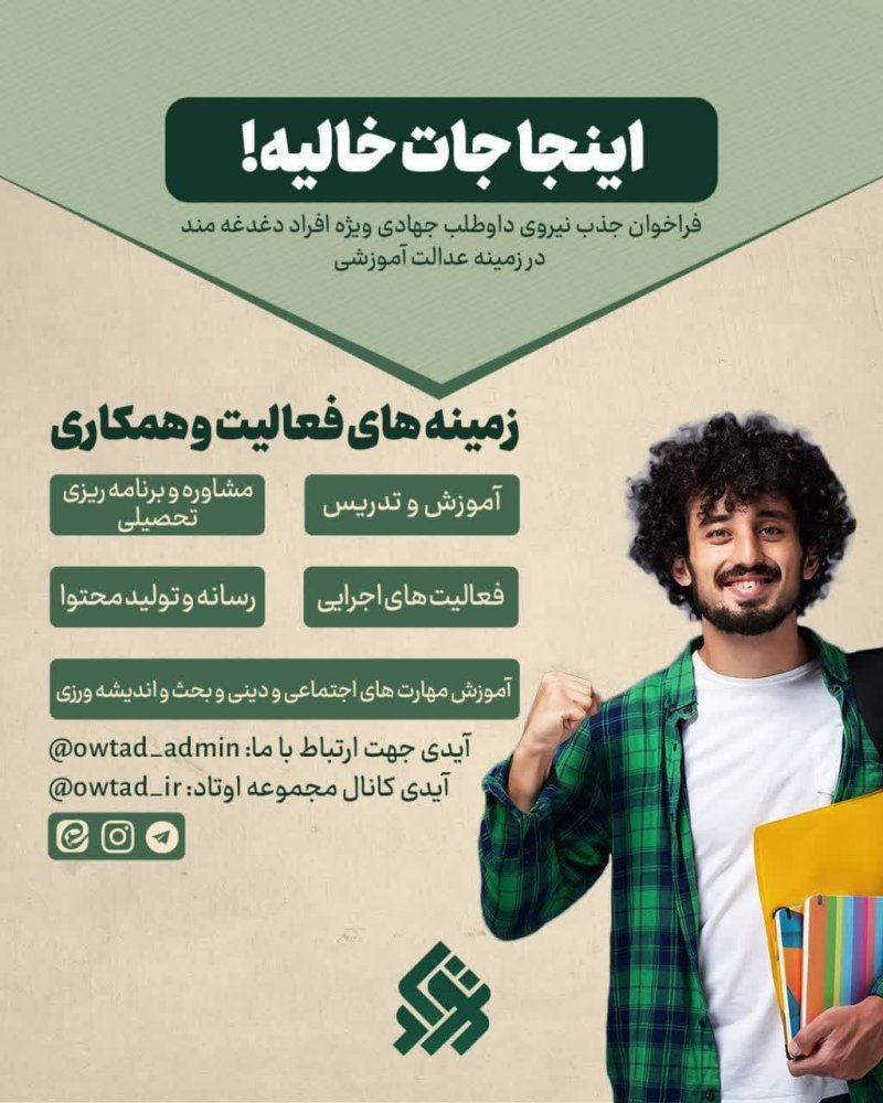 شماره کارت ۶۳۹۶-۰۷۱۲-۱۶۳۸-۸۹۵۹ به نام گروه مردمی اوتاد کمکهای شما به اختیار اعضا در راه آموزش و خدمت رسانی و اهداف گروه هزینه میشود