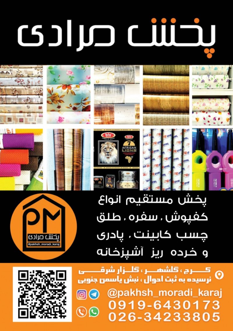 پخش مستقیم انواع کفپوش،سفره،طلق رومیزی،چسب کابینت،شیشه مات کن،انواع دستمال جادویی میکروفایبر،وایت اند وایت،انواع لوازم لوکس آشپزخانه💯 آدرس:کرج،۴۵متری گلشهر،چهار راه گلزار،به سمت ثبت احوال نبش یاسمن جنوبی(پخش مرادی)