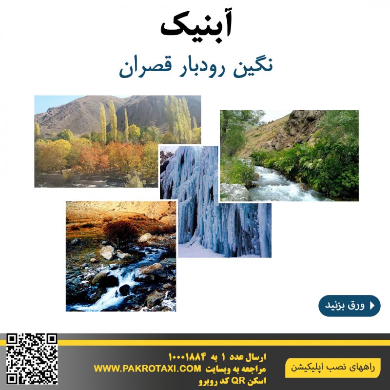 هر پنجشنبه معرفی یه جای دیدنی😍 روستای آبنیک، نگین رودبار قصران🔸🔸🔶 آبنیک در استان تهران و شهرستان شمیرانات قرار دارد. این روستا در شمال غربی شهر تهران واقع شده است و فاصله آبنیک تا تهران حدود ۶۰ کیلومتر است. برای رسیدن به آبنیک باید راه روستای فشم را پیش گرفت و با گذر از روستاهای زایگان و لالان به این روستا رسید. آبنیک از روستاهای اطراف تهران است و مقصد خوبی برای سفرهای آخر هفته به حساب میآید. سفری راحت و ایمن به همراه خانواده با تاکسیهای اکو، اکو پلاس، وی ای پی، ون و... را تجربه کنید 🚖🚖🚖