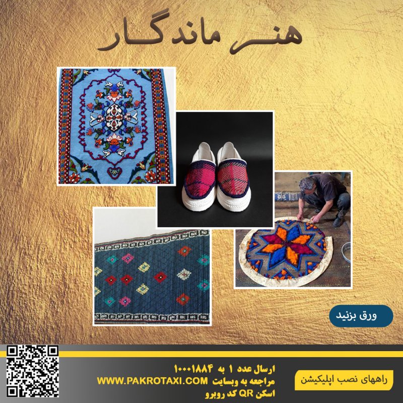 هر شنبه معرفی یه هنر ایرانی😍قالی، پته دوزی، سیس بافی، خورجین بافی و شال بافی بخشی از صنایع دستی شهر کرمان🔸🔸🔶 شما هم به پیج پاکروتاکسی بیاین و هنر شهر و استان خودتون رو به ما معرفی و کامنت کنید😍 ☺️پاکرو تاکسی حامی هنر و فرهنگ ایرانی ☺️