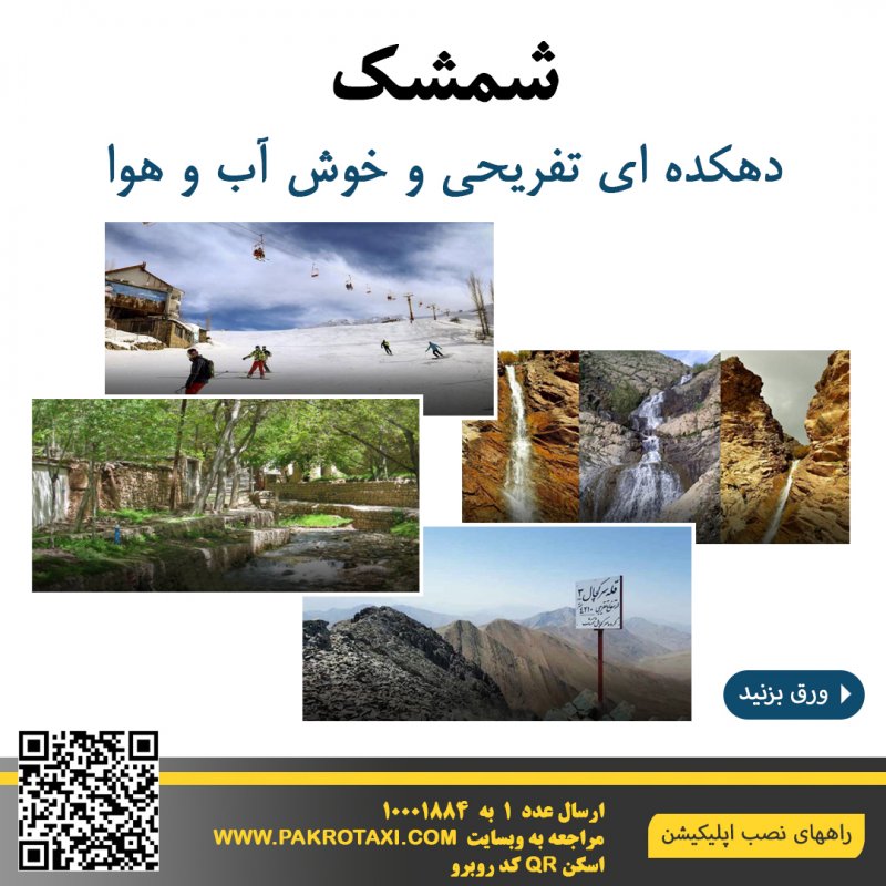هر پنجشنبه معرفی یه جای دیدنی😍 شمشک، دهکده ای تفریحی و خوش آب و هوا🔸🔸🔶 بهترین راه رسیدن به شمشک، استفاده از جاده لشگرک است. سفری راحت و ایمن به همراه خانواده با تاکسیهای اکو، اکو پلاس، وی ای پی، ون و... را تجربه کنید