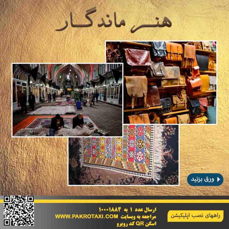 هر شنبه معرفی یه هنر ایرانی😍چرم های مرغوب، فرش، گلیم و ورنی بافی بخشی از صنایع دستی شهر تبریز 🔸🔸🔶 شما هم به پیج پاکروتاکسی بیاین و هنر شهر و استان خودتون رو به ما معرفی و کامنت کنید😍 ☺️پاکرو تاکسی حامی هنر و فرهنگ ایرانی ☺️