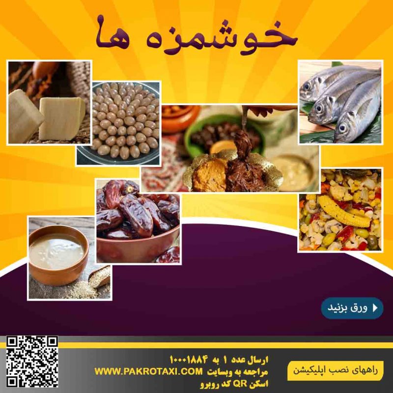 هر سه شنبه معرفی یه خوراکی خوشمزه ی جذاب😍پنیر نخل، خارک، حلوا، ماهی و میگو، ترشی، ارده بوشهر و خرما🔸🔸🔶 این خوراکی ها مربوط به شهر بوشهر است. ما که دلمون رفت برای این خوراکی های خوشمزه شما چطور؟ 😋😋با پاکروتاکسی سفر خاطره انگیز را به شهرهای ایران تجربه کنید 🚖🚖🚖