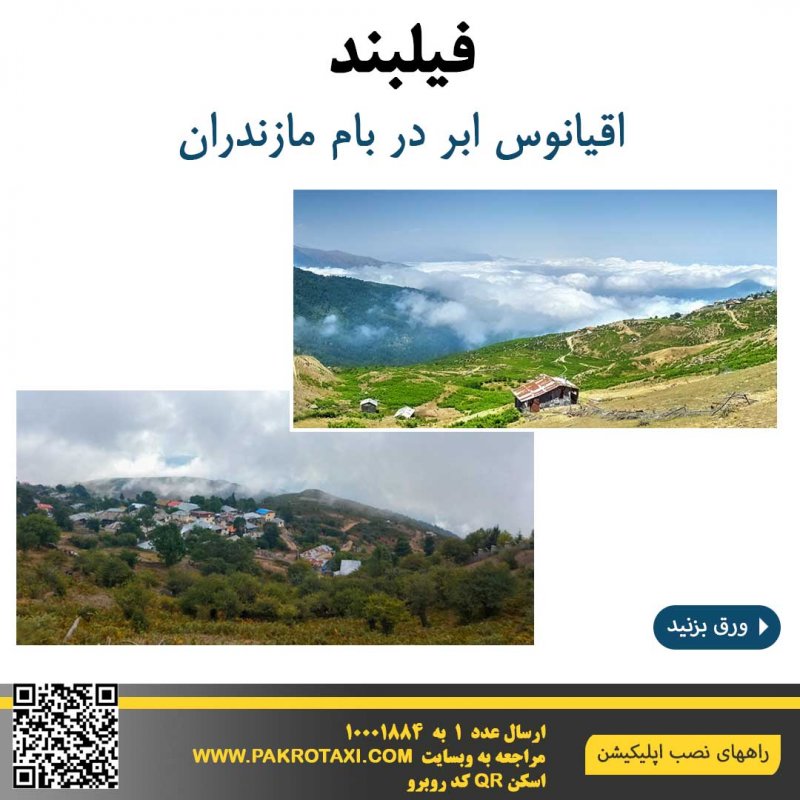 هر پنجشنبه معرفی یه جای دیدنی😍 فیلبند، اقیانوس ابر در بام مازندران🔸🔸🔶 روستای فیلبند بهدلیل ارتفاعی که از سطح دریا دارد، به بام مازندران معروف شده است. سفری راحت و ایمن به همراه خانواده با تاکسیهای اکو، اکو پلاس، وی ای پی، ون و... را تجربه کنید