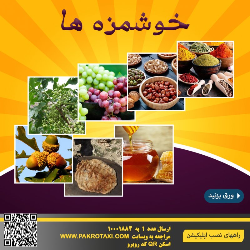 هر سه شنبه معرفی یه خوراکی خوشمزه ی جذاب😍گیاهان دارویی، خشکبار یاسوج، انگور، پسته کوهی، بلوط یاسوج، نان های محلی و عسل طبیعی🔸🔸🔶 این خوراکی ها مربوط به شهر یاسوج است. ما که دلمون رفت برای این خوراکی های خوشمزه شما چطور؟ 😋😋با پاکروتاکسی سفر خاطره انگیز را به شهرهای ایران تجربه کنید 🚖🚖🚖