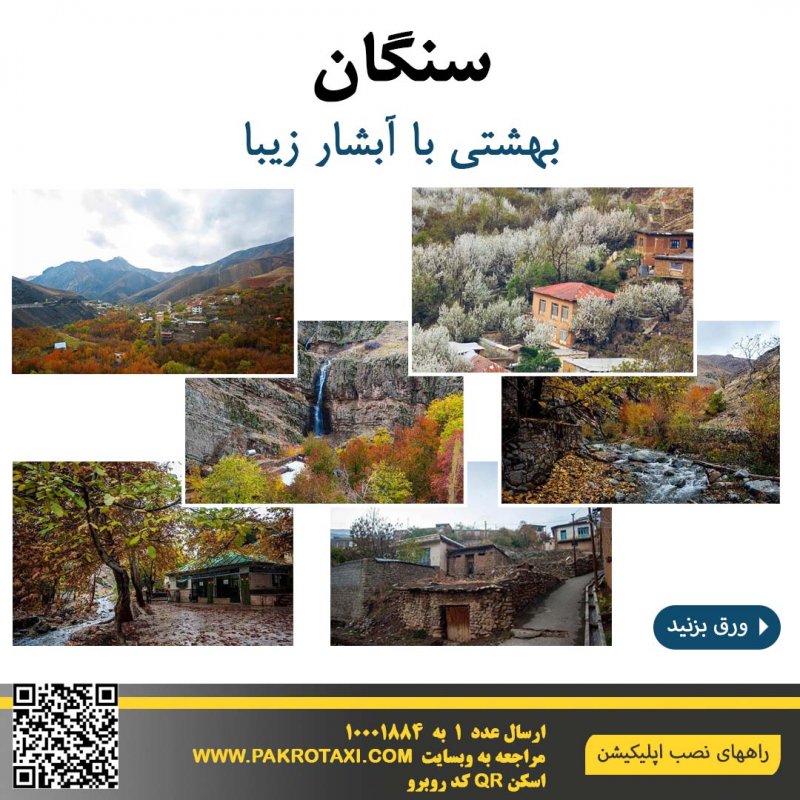 هر پنجشنبه معرفی یه جای دیدنی😍 سنگان، بهشتی با آبشار زیبا🔸🔸🔶 روستای سنگان را به دو چیز میشناسید، یکی آبشار سنگان و دیگری قله پهنه حصار. سفری راحت و ایمن به همراه خانواده با تاکسیهای اکو، اکو پلاس، وی ای پی، ون و... را تجربه کنید