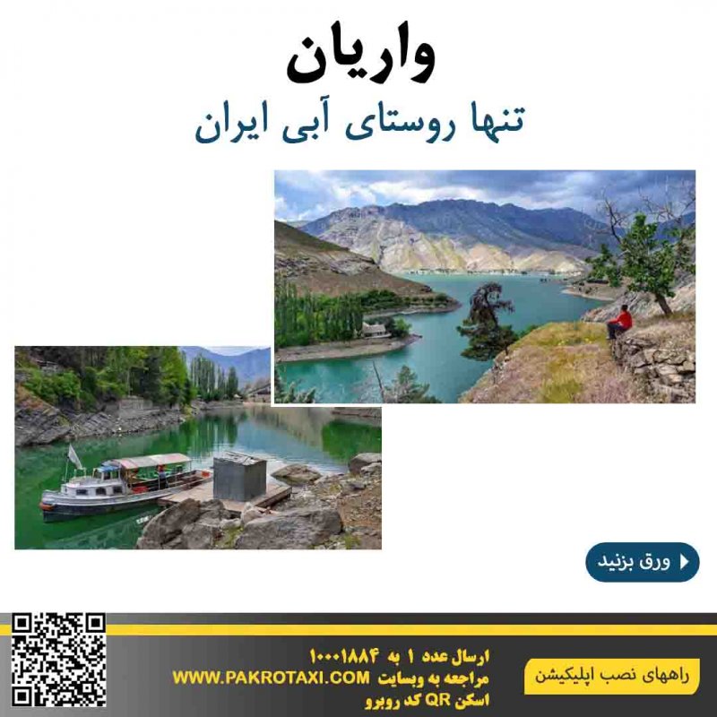 هر پنجشنبه معرفی یه جای دیدنی😍 واریان، تنها روستای آبی ایران🔸🔸🔶 روستای واریان از شهر تهران ۶۶ کیلومتر و از استان البرز ۳۶ کیلومتر فاصله دارد. این روستا در مسیر جاده چالوس و بعد از سد کرج در بخش آسارا در دهستان آدران قرار دارد. برای رفتن به این روستای جذاب باید ۲۵ کیلومتر در جاده چالوس برانید تا در ۲ کیلومتری پلیسراه کرج-چالوس تابلوی ورودی روستا را ببینید. سفری راحت و ایمن به همراه خانواده با تاکسیهای اکو، اکو پلاس، وی ای پی، ون و... را تجربه کنید