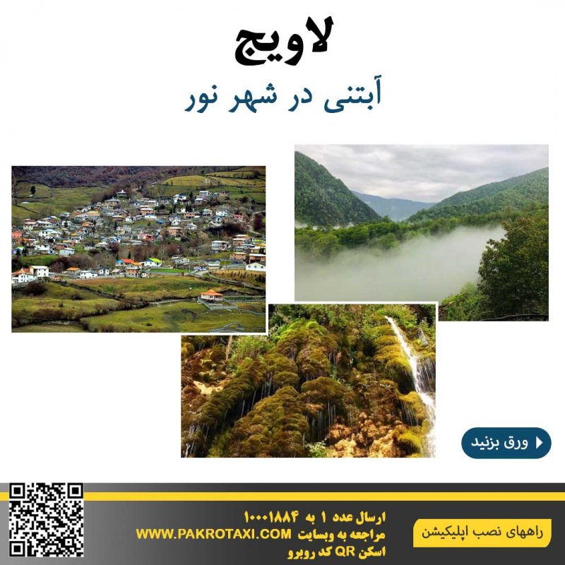 هر پنجشنبه معرفی یه جای دیدنی😍 لاویج، آبتنی در شهر نور🔸🔸🔶 این جاذبه گردشگری و توریستی از شرق استان مازندران و از جاده هراز قابل دسترس است. به سمت چمستان میروید، پس از آمل از پارک جنگلی کشپل رد میشوید. پس از تقریبا ۱۸ کیلومتر رانندگی به روستای لاویج میرسید. از طرف غرب استان مازندران نیز از طریق مسیر شهر نور، به سمت شهر چمستان حرکت میکنید و با طی کردن مسیر ۲۰ کیلومتری به روستای لاویج میرسید. سفری راحت و ایمن به همراه خانواده با تاکسیهای اکو، اکو پلاس، وی ای پی، ون و... را تجربه کنید