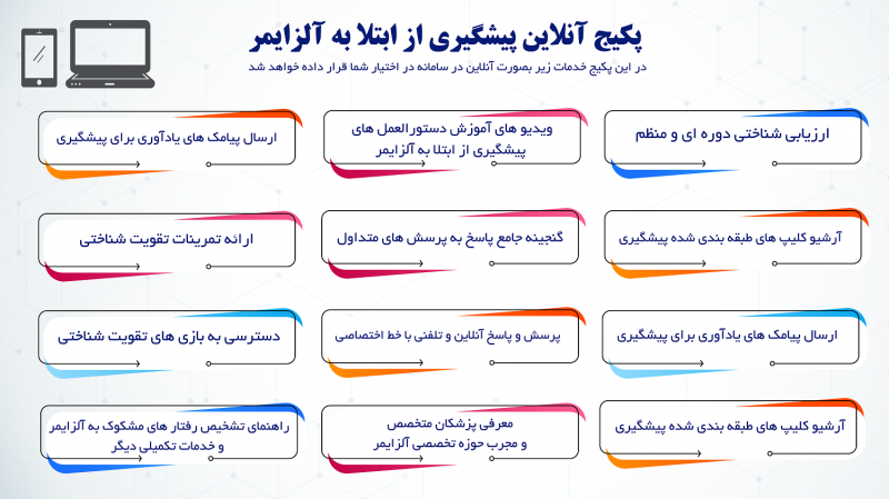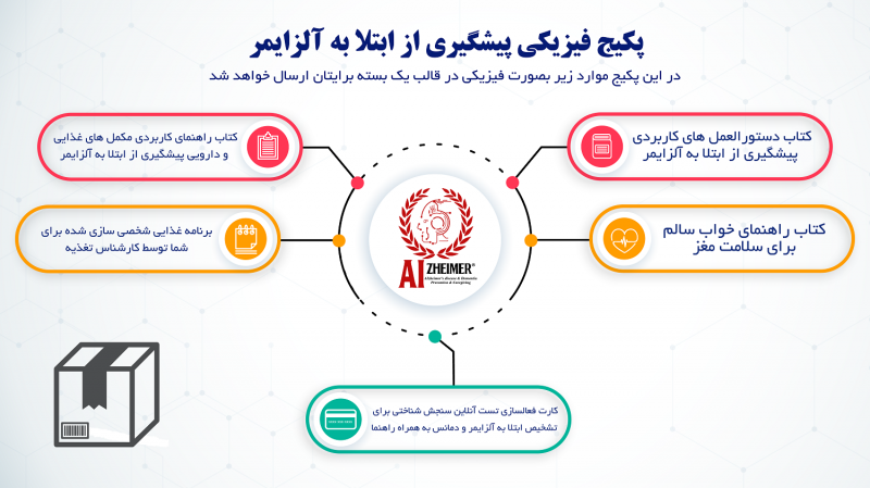 پکیج پیشگیری از ابتلا به بیماری آلزایمر که مخصوص افراد با ریسک بالای ابتلاست، در واقع به ارائه ی ۱۰۵ توصیه ی پیشگیری ( که تاثیرگذاری آن ها با درصد بالایی در تحقیقات و مقالات معتبر اثبات گردیده و اعتبار سنجی شده است ) می پردازد که پس از چندین ماه تلاش توسط تیم ایزایمر و با همکاری اساتید دانشگاه علوم پزشکی ایران و مرکز تحقیقات علوم اعصاب این دانشگاه، از تحقیقات و پژوهش های معتبر بین المللی استخراج و برای استفاده کاربران ترجمه و تدوین گردیده است و در قالب یک کتاب، موفق به اخذ مجوز وزارت ارشاد گردیده و منتشر گردیده است، می پردازد. در این پکیج جهت بالابردن راندمان رعایت این توصیه ها در کاربران، سامانه ایزایمر به فالوآپ این کاربران از طریق ارسال پیامک های یادآور ( ریمایندر ) بصورت خودکار می پردازد و بصورت دوره ای توسط پشتیبانان تیم ایزایمر فالوآپ می گردند؛ همچنین وضعیت شناختی کاربران بصورت دوره ای بر روی سامانه با تست های ارزیابی شناختی استاندارد، مورد ارزیابی قرار می گیرد و دسترسی به موارد دیگری که برای این عزیزان جهت پیشگیری مطلوب و موثر نیاز است، همچون موارد بالا بر روی سامانه در اختیارشان قرار می گیرد :