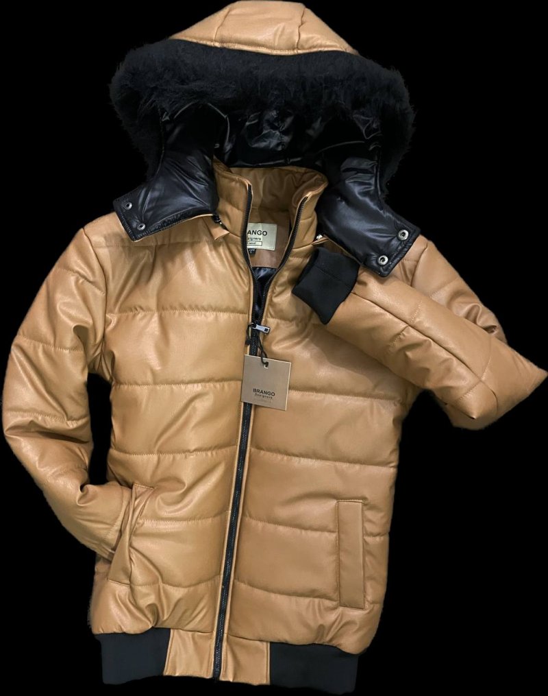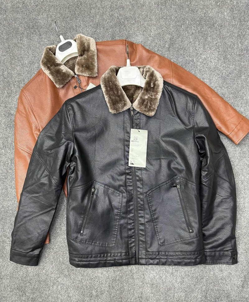 کاپشن چرم یقه خزدار مشکی،عسلی XL تا 4XL
