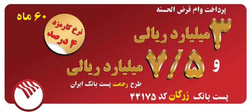 تسهیلات ۳ میلیارد ریال از ۱۱ تا ۵ درصد به کارکنان شرکت ها ، یک ماه پس از مانده حساب جاری شرکت در پست بانک زرگان قابل پرداخت است .