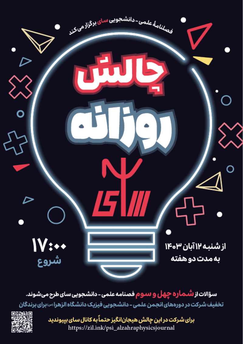 نشریه «سای» به صاحب امتیازی انجمن علمی - دانشجویی فیزیک دانشگاه الزهرا (س)، مدیر مسئولی فاطمه سادات صوفباف و سردبیری ثنا رسولیمقام به صورت فصلنامه منتشر میشود. عمده اهداف ما در نشریه سای به شرح زیر است: 🔵 ارائه آخرین اخبار دنیای فیزیک 🔵 تشوق دانشجویان به نگارش علمی و جذب دانشجویان مشتاق و خلاق 🔵 معرفی دانشمندان، اساتید و کارآفرینان حوزه فیزیک 🔵 معرفی حوزهها و زمینههای مختلف رشته فیزیک 🔵 معرفی و اطلاعرسانی رویدادهای علمی