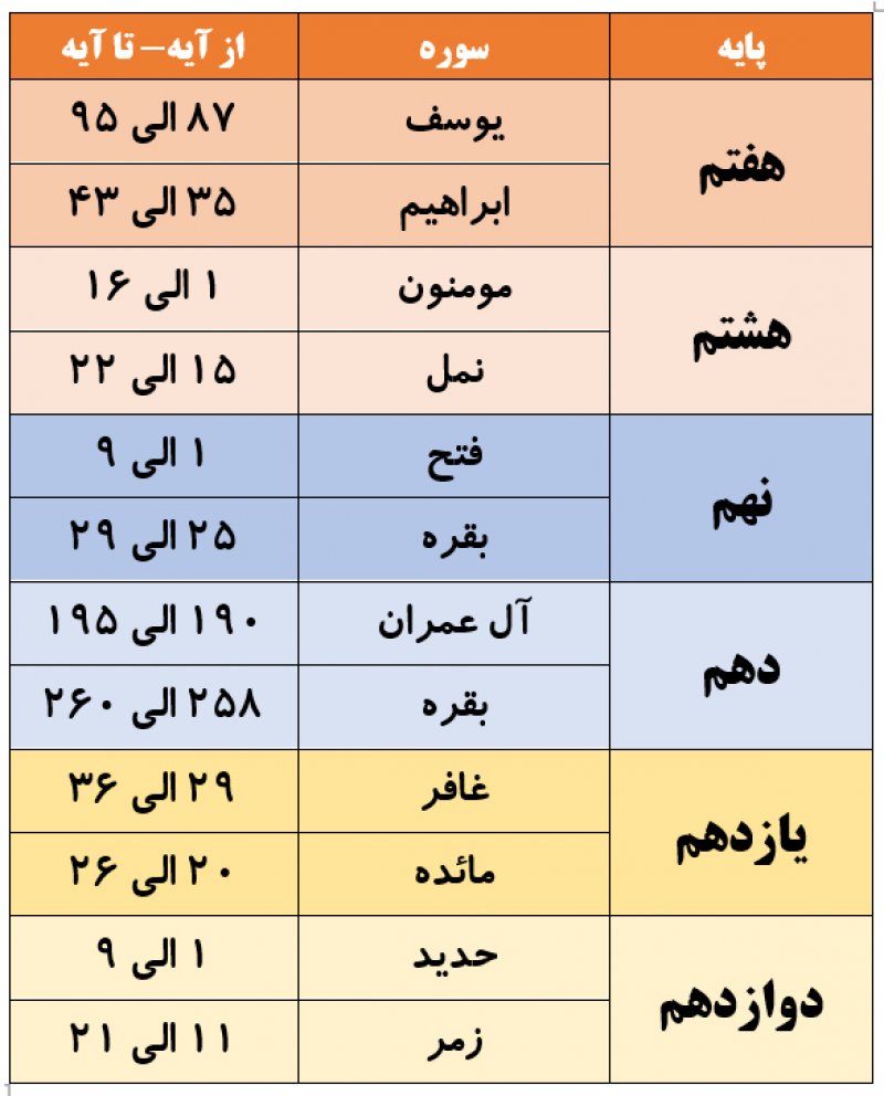 جدول قرعه ترتیل خوانی رشته فهم (تفسیر) قرآن