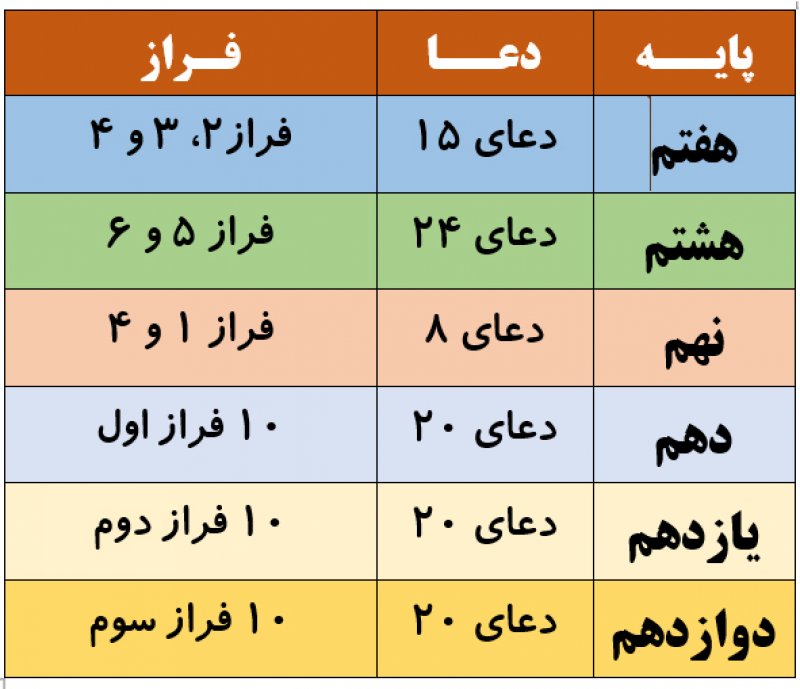 ۱۰ فراز دوم دعای ۲۰ صحیفه سجادیه مندرج در رمزینه کتاب دین و زندگی