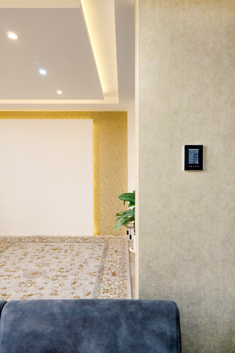 پروژه آقای اتحادیه عزیز در ۳ طبقه و به صورت تریپلکس اجرا شده توی پارکینگ یک سوییت خوشگل هست، و دو طبقه بالایی با یک پله پیچ زیبا با هم ارتباط دارند. روشنایی هوشمند، سیستم امنیتی هوشمند، اعلام حریق هوشمند، سیستم صوتی یکپارچه و هوشمند برای هر سه طبقه و پرده برقی هوشمند به ارتفاع ۶ متر از آپشن های این پروژه هست که اجرا شده است.