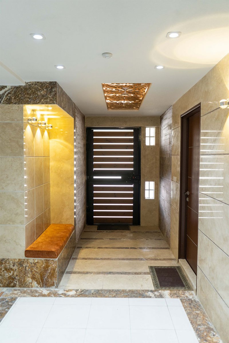 در فضای پارکینگ فقط یک کلید هوشمند وجود دارد، همین یک کلید برای فضای پارکینگ کافی است. روشنایی پارکینگ ، آبنما و روشنایی نما نیز با این کلید کنترل می شود. با کلید هوشمند طبقات دیگر نیز میتوان روشنایی نما و پارکینگ را کنترل کرد. تمامی اعضای خانواده با گوشی موبایل خودشون می توانند این موارد رو کنترل کنند.