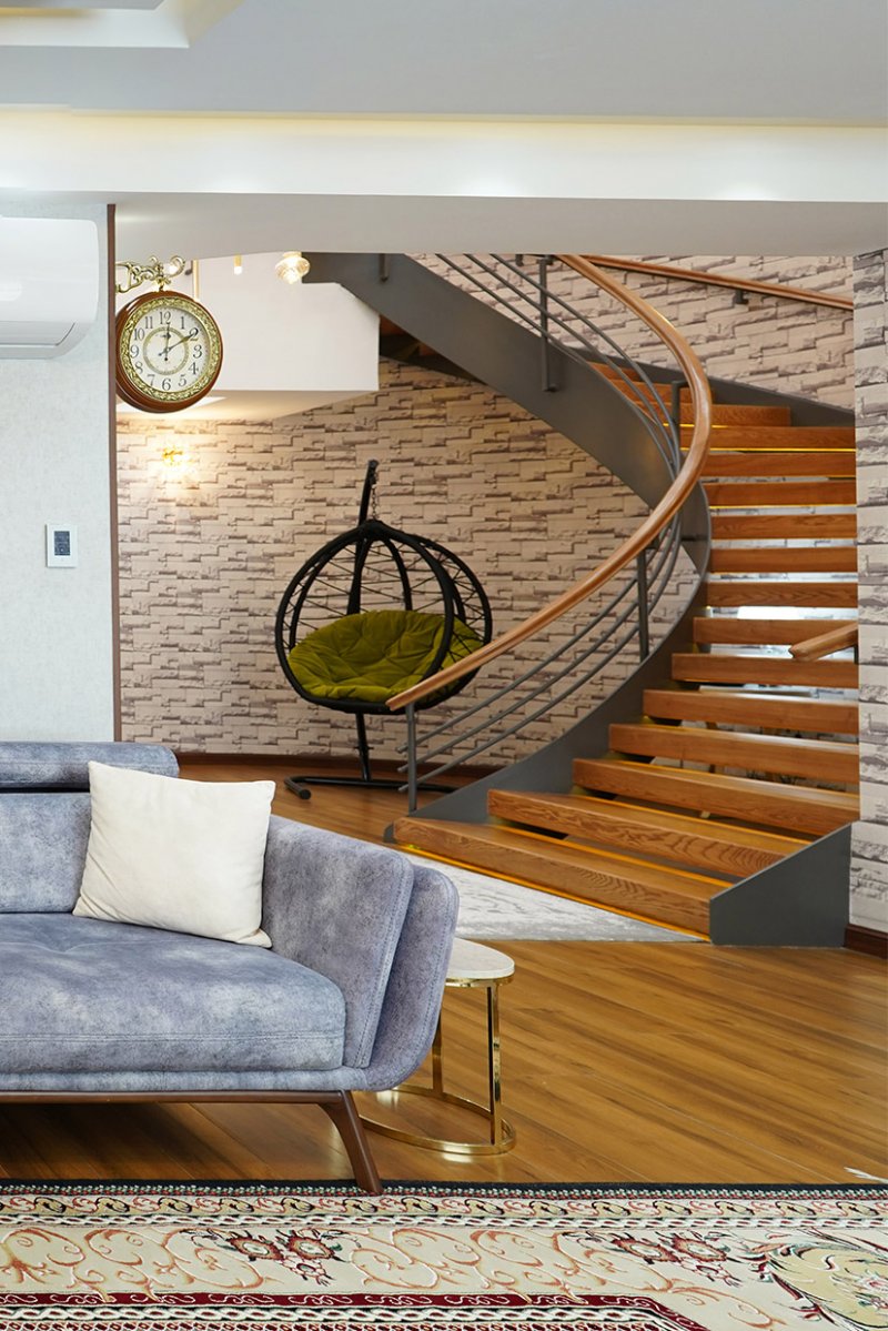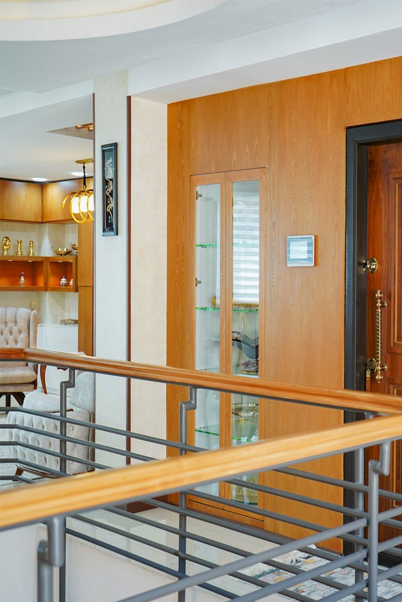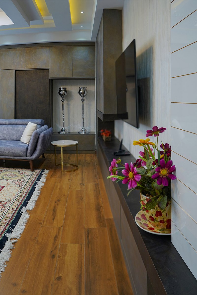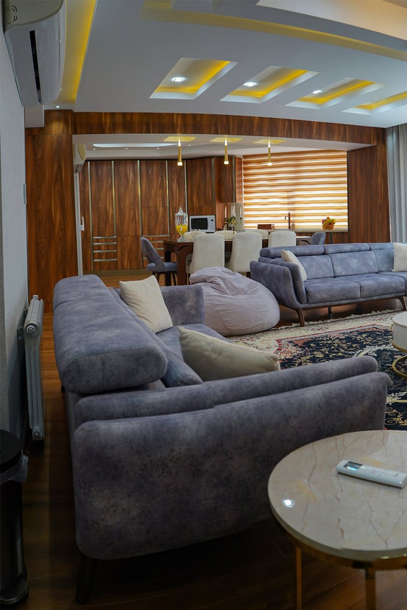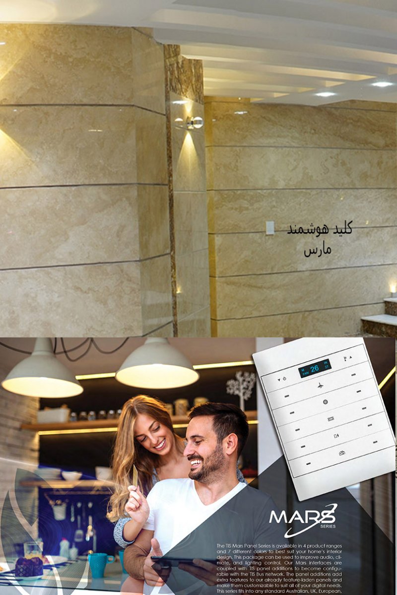 این سالن زیبا فقط با یک کلید هوشمند کنترل میشه. یکی از جذابیت های خانه هوشمند حذف تعداد زیادی کلید تک پل و دوپل سنتی است. این نکته فراموش نشه که تلفن همراه اعضای خونه کلید های روشنایی این خونه هست.