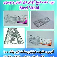 تولیدی آبچکان محمدزاده . با نامتجاری STEEL VAHID بزرگترین تولید کننده آبچکان در شرق کشور(مشهد) در طرح ها و مدل های مختلف ،لوله ای، ساده، بدنه فلز، ام دی اف، آبکاری، استیل اصل ۳۰۴، روکشدار، پروفیلی، بافت، طلایی فورتیک، ایتالیایی، تا به تا، هفتی هشتی، و.... انواع سبد سوپری، پیازی چند منظوره، پیازی از کف ثابت، سومر پهلو، کف ریل، سوپر وسط، سطل زباله ریلی،و...با بسته بندی عالی و ریل درجه یک و ضمانت کتبی اولین تولید کننده استند پشت پنجره ای در مشهد، با رنگ کوره ای درجه یک در چهار رنگ مشکی و سفید و نقره ای و طلایی در سه سایز ۸۰ و۹۰ و ۱۰۰ و ۱۲۰سانت با بیش از ده سال سابقه تولید و پخش در سرتاسر کشور و صادرات به کشورهای همسایه