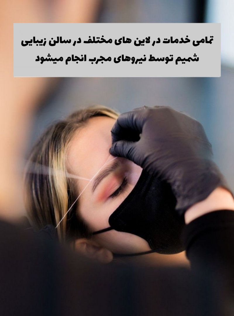 -رنگ مو -پاکسازی پوست -کاشت و دیزاین ناخن -صافی و احیای مو -اطلاح صورت و ابرو -وکس صورت -لیفت و لمینت مژه و ابرو -اکستنشن مژه -میکاپ و شینیون -کوتاهی مو ژورنالی -پدیکور و مانیکور -براشینگ ساده و مجلسی