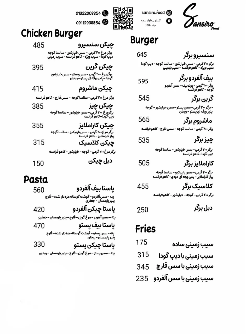 آدرس : رشت ، گلسار ، بلوار سمیه جنب ۱۳۸ ، سنسیرو فود