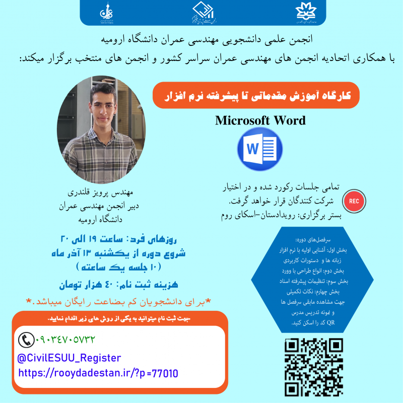 نمونه تدریس مدرس دوره (مهندس پرویز قلندری) (دبیر انجمن علمی مهندسی عمران دانشگاه ارومیه)